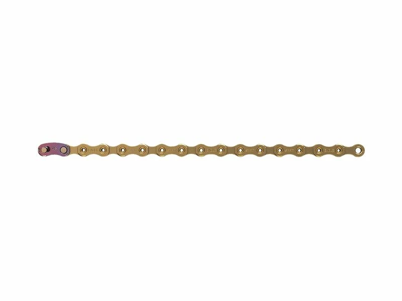 La chaine PC XX1 Eagle de Sram dispose d’une toute nouvelle conception basée sur la technologie FlowLink. Les maillons n’ont plus d’angle saillant ni de chanfrein pour obtenir des plaques plus plates. Ainsi le rivetage est plus solide, plus précise, plus silencieuse et plus durable. Elle est reconnaissable grâce à ses 3 finitions spécifiques noire, or et « Rainbow » et est livrée avec une attache rapide PowerLock 12 vitesses non réutilisable en forme de banane.